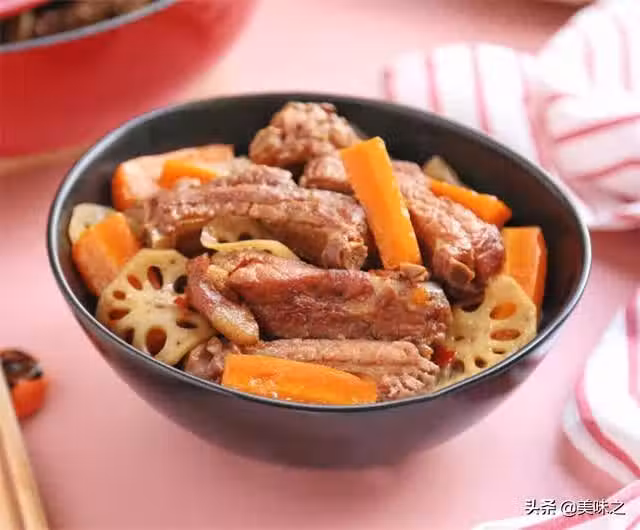 排骨2斤、胡蘿蔔1個、蓮藕1節、老抽10克、生抽30克、十三香3克、薑片4片、料酒30克、鹽2克、胡椒粉2克、大蒜3個、香葉2片、八角2個、熱水適量、豆瓣醬2勺。