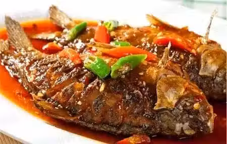 2.紅燒魚的刀法是豎切,魚呈塊狀。先在油鍋內煎一下,油適量不必太多。