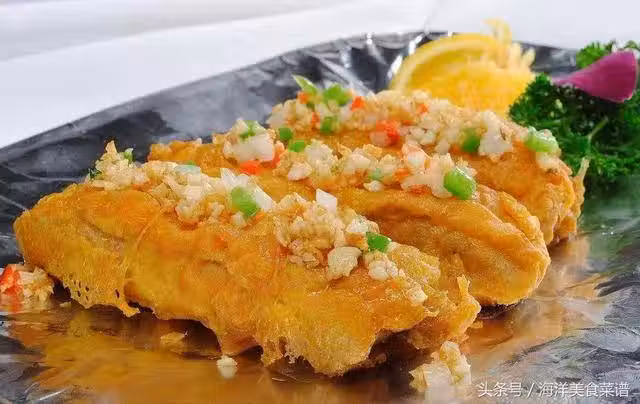 3、油燒到二成熱,把排骨放入鍋中,油溫由低至高漸漸炸制,至肋排成熟、外皮結殼掏出瀝干油。