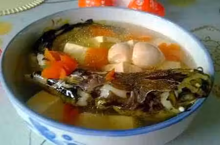 黃甲魚300g、豆腐150g、生薑15g、鹽適量、紅蘿蔔80g、鵪鶉蛋45g、胡椒粉適量