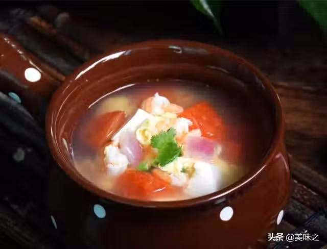 豆腐1塊、洋蔥半個、番茄2個、鮮蝦150克、雞蛋1個、姜2片、鹽適量。
