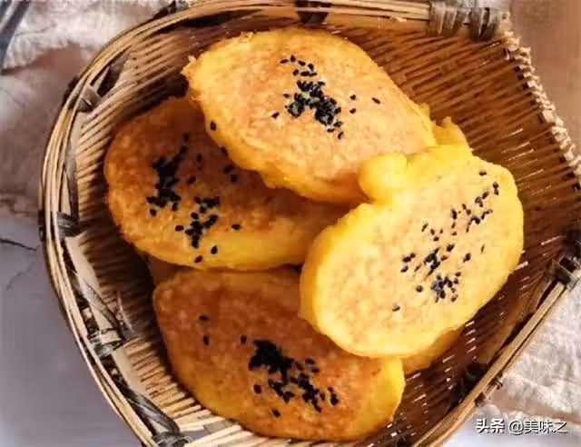 7、撒少許芝麻,一面定型後再翻面,烙至兩面金黃即可出鍋。