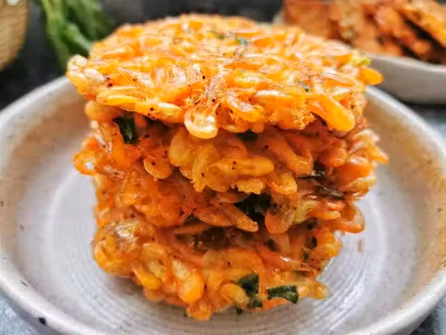 孩子長個頭,我給他做蝦餅,金黃酥脆倍兒香,連殼兒都吃完