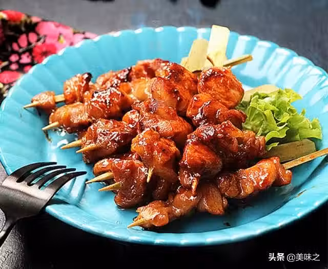6、煎透後再次刷上一層叉燒醬,簡版的叉燒雞肉串做好了。