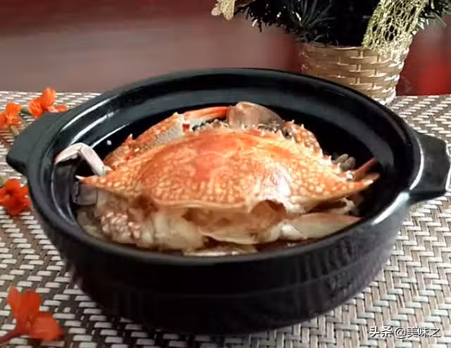 5、炒好的螃蟹放入泡好的米上入蒸鍋中蒸20分鐘左右即成。