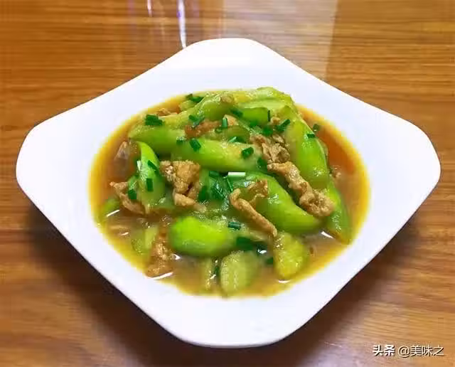 絲瓜適量、豬肉適量、鹽適量、料酒適量、生抽適量、蔥適量、姜適量、蒜適量。