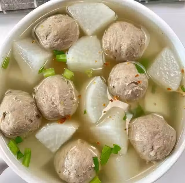 (1)白蘿蔔洗凈去皮切塊,牛肉丸提前解凍,生薑去皮切片,小蔥香菜切好備用。