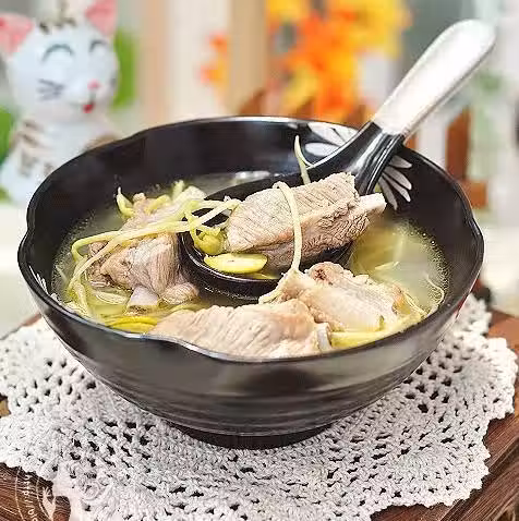 食材:排骨、黃豆芽、蔥段、薑片、鹽、料酒。