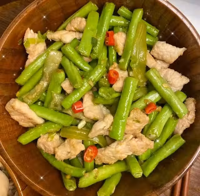 (1)豆角洗凈切段,裡脊肉洗凈切片,小米辣切圈,小蔥切蔥花,生薑蒜瓣去皮切末。