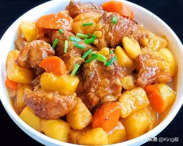 加適量鹽,加入切塊的土豆(正好有半根胡蘿蔔,也一起放了)繼續燉15分鐘左右。