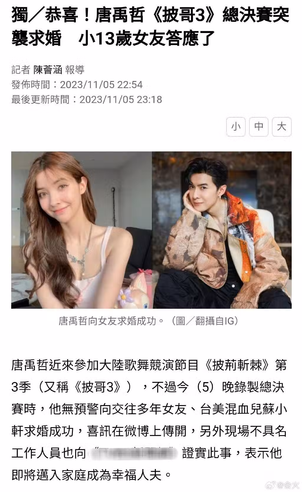 台媒證實唐禹哲求婚成功 因太匆忙用林志穎的戒指_哥哥_其他_證實了