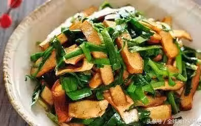 食材:韭菜,香乾,干辣椒絲,薑絲,花椒油,鹽,五香粉,生抽,雞精