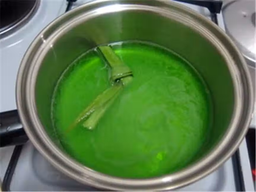 9.把青色燕菜倒在椰漿燕菜上即可,待仙草燕菜完全冷卻後就可放進冰箱裡冰鎮下啦!