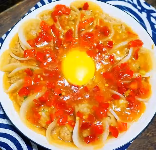 (4)盤中打入一枚雞蛋,放入鍋中蓋上鍋蓋大火蒸12分鐘左右。