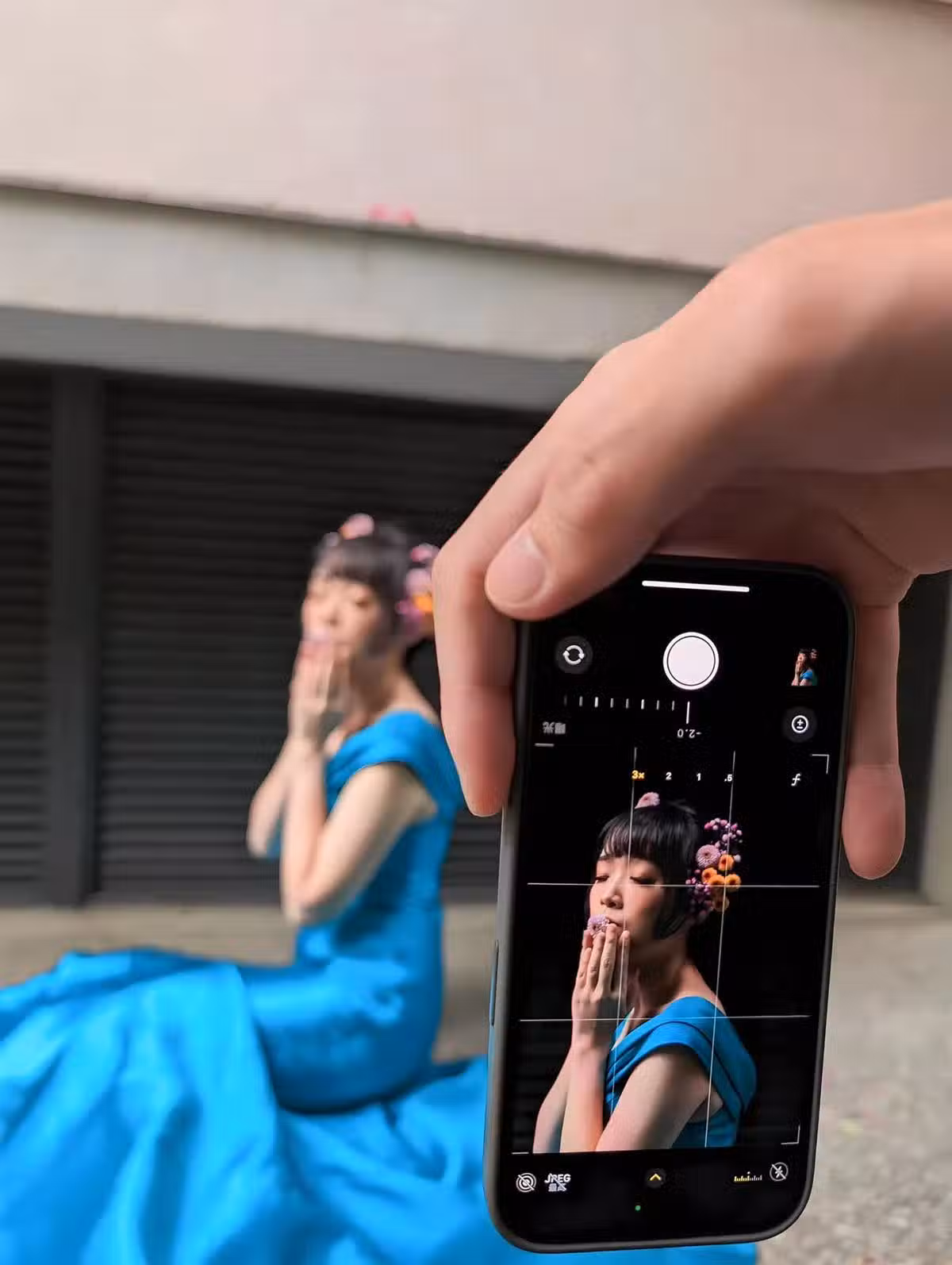 第一原因:手機主鏡頭是小廣角,因此手機反手持與原本相機位置會產生約7.7公分左右的高度差異,高度差及角度運用的好的話,直接可以讓畫面中主角的腿長變得修長,身材比例變得更好看。