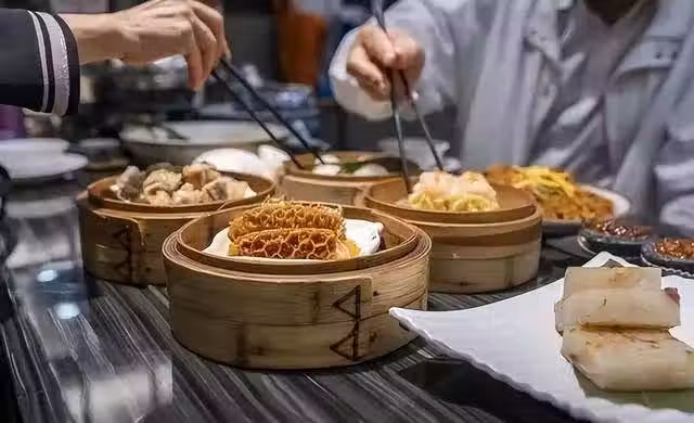 很快,叉燒,紅米腸,鳳爪,蝦餃,蒸排骨……輪番上桌,開始抱怨不好吃的同學,也狼吞虎咽起來,吃的津津有味。