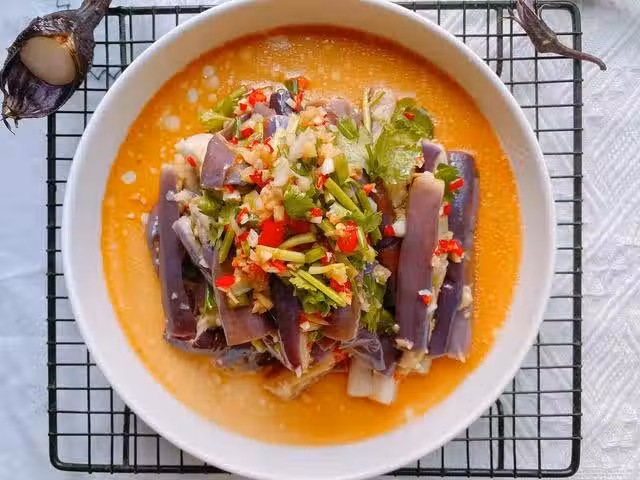 2、茄子一定要完全煮熟再吃,家裡的火候不同或者茄子的粗細程度不一樣,蒸的時間也不一樣,一定要蒸熟才能涼拌。