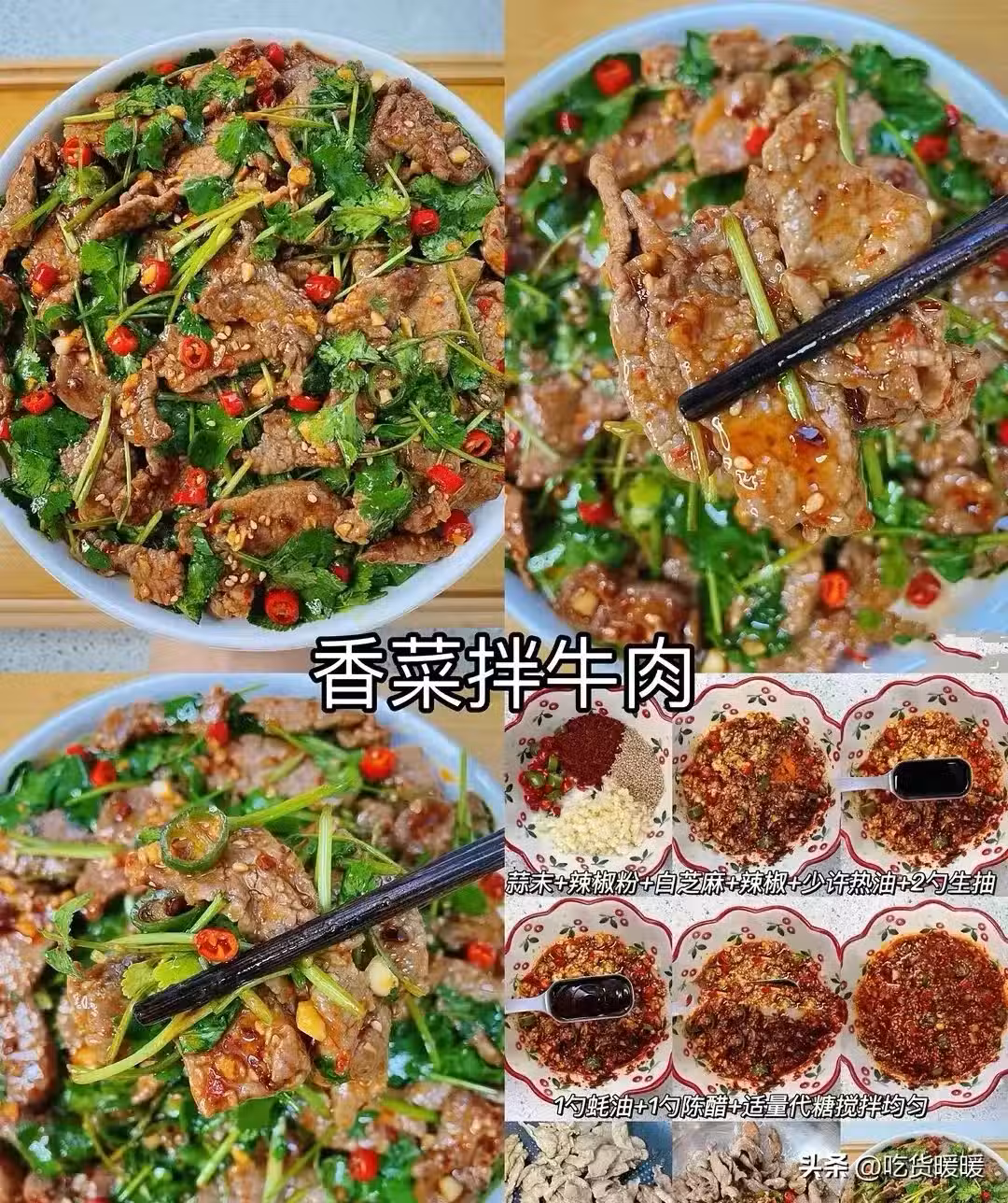 蒜末+辣椒粉+白芝麻+辣椒+少許熱油+2勺生抽勺蚝油+1勺陳醋+適量代糖攪拌均勻熱油快速滑熟牛肉裝盤加入香菜倒入醬汁拌勻。