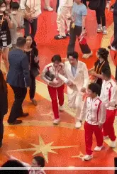 兩人最後成了手挽手蹦蹦跳跳離場。這一幕真像是兩個小朋友一見如故之後離場。不得不說,全紅嬋不接受採訪的時候真是很活躍,而王祖藍也是很活躍的人,兩人在一起正好可以搞怪。