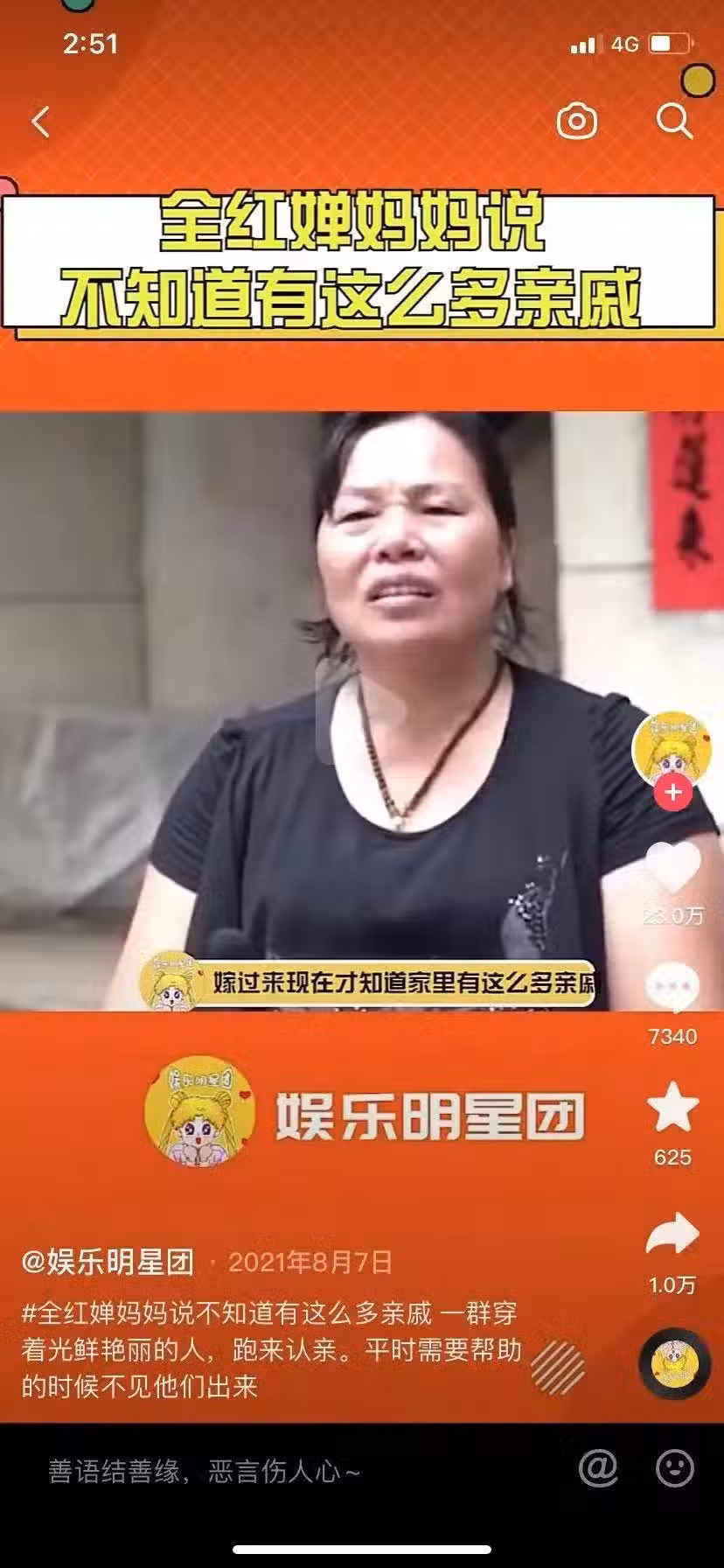 是啊,全紅嬋一家7口,5個孩子,全媽媽幾年前因為交通事故被嚇得引發了癲癇,不能幹重活,而且隨時有發病的可能。所以1家7口的生活都落在了爸爸一個人的身上。 家裡本身就很窮,1個人工作7個人花,媽媽生了病也沒錢治病,借錢,親戚也無人問津,沒有借給他家。