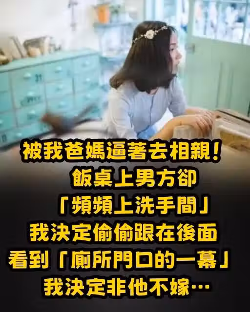 被爸媽逼著去相親!飯桌上男方卻「頻頻上洗手間」,我決定偷偷跟在後面,看到「廁所門口的一幕」,我決定非他不嫁…