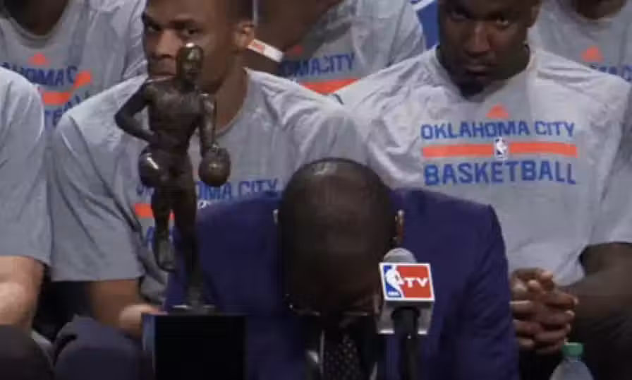 杜蘭特生涯只拿到過1次常規賽MVP(2013-14賽季),確實有點少。