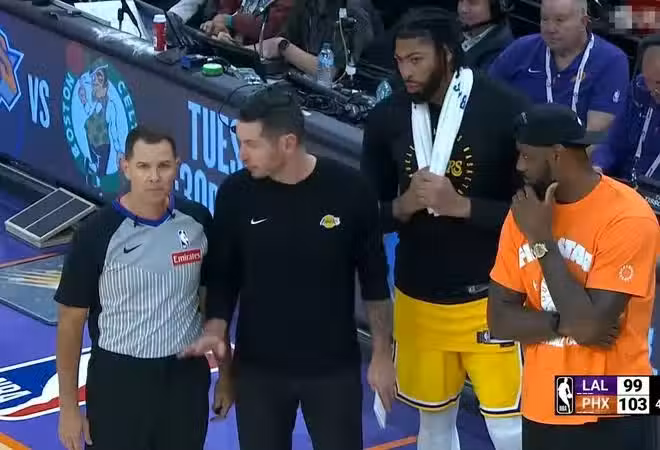 詹姆斯憤怒的帶著濃眉雷迪克一起施壓去維護兒子,可是裁判還是沒有改判,這個空中撞人動作,被認定是一個惡意動作,可實際上19歲的布朗尼或許並沒有多想,只是想好好防守而已,只是對手摔得太狠了。