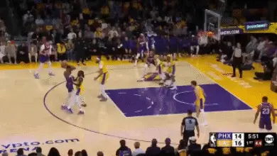 理由二:湖人方面。杜蘭特一路「碾壓」普林斯往籃下沖,在上籃的一瞬間被補防到籃下的八村塁完成封蓋。