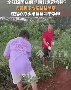 視訊中,全紅嬋拿起鋤頭鏟掉果園裡的雜草,顯然是在幫助爸媽幹活。她光著腳下地,跟爸爸一起干農活。不僅如此,幹完活,全紅嬋還打水,幫爸爸沖乾淨腳。有這樣的閨女,實在太幸福了。