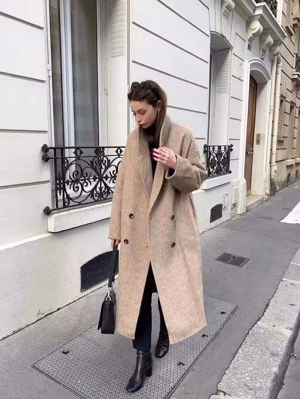 對於大衣的選擇,還需要注意其長度, 避開剛剛好在膝蓋位置的長度,容易顯得身材比例不好,選擇短一點或長一點會更好。