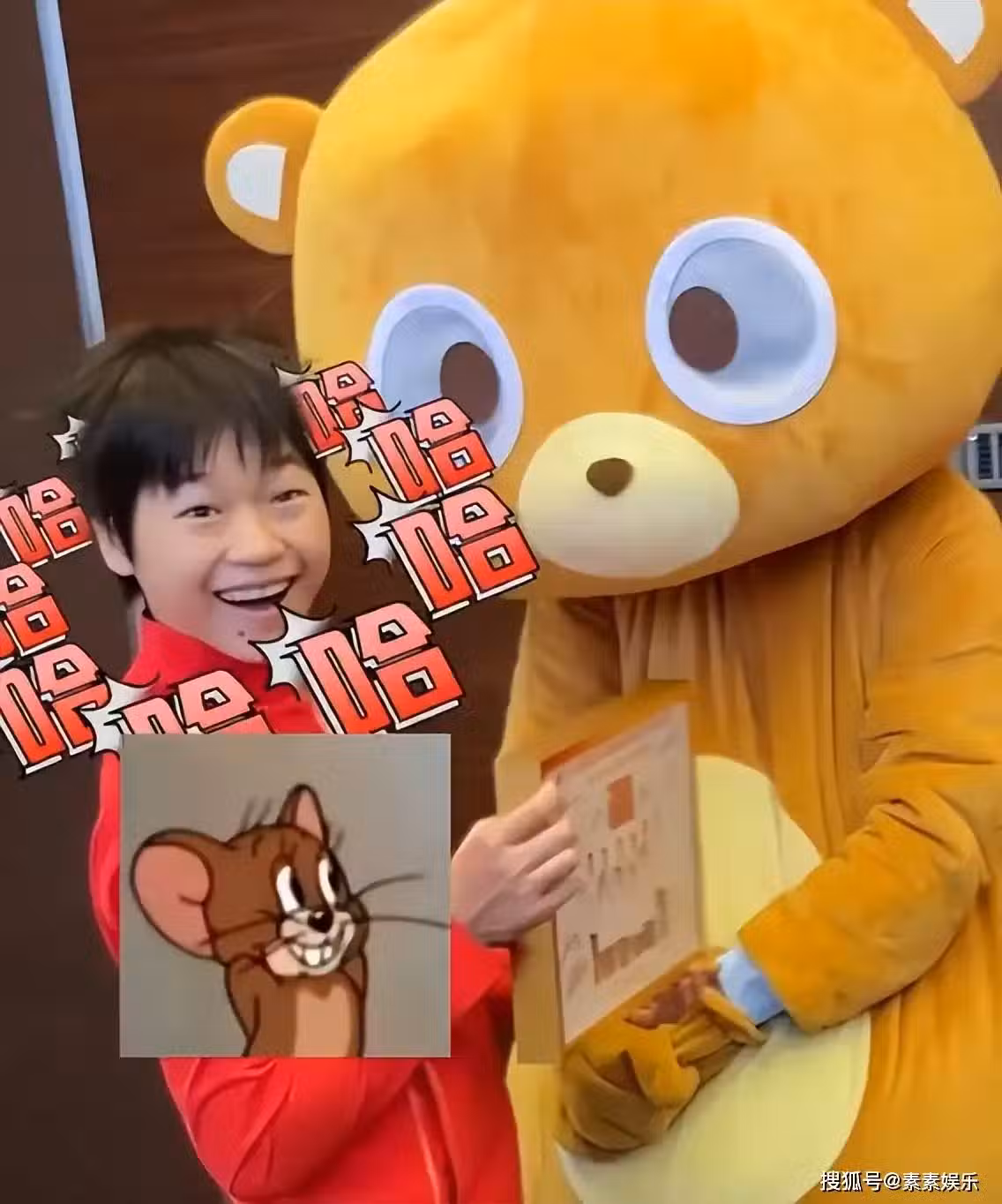 手拿交換禮物的全紅嬋與小熊再一次的合影,現場哈哈聲不斷。