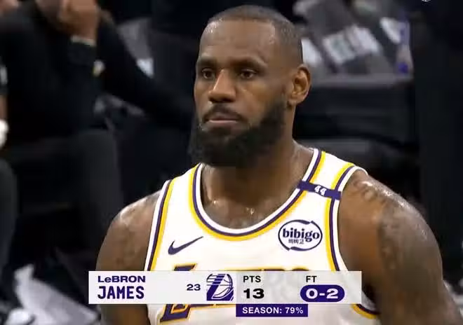 湖人對陣馬刺的比賽,最終他們完成了一場5分的險勝,雖然濃眉砍下了40+12的超級數據,但是詹姆斯卻再度立下了大功。最後時刻詹皇一個突破兩分,一個兩次罰球,關鍵4分為勝利做出了非常重要的貢獻。