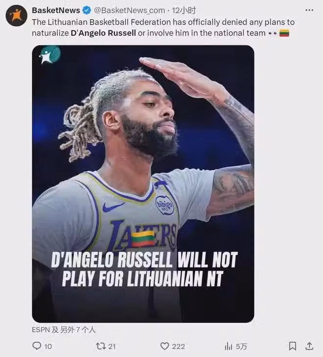 你太菜了!籃協正式回應!拒絕歸化拉塞爾