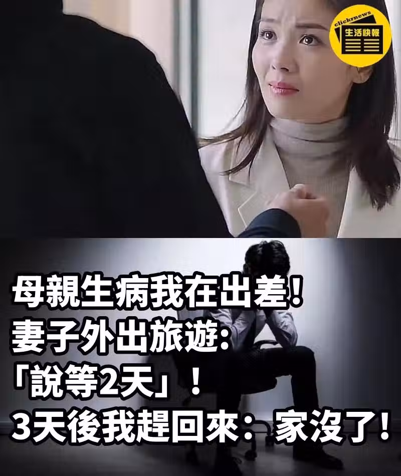 母親生病我在出差!妻子外出旅遊「說等2天」,3天後我趕回來:家沒了