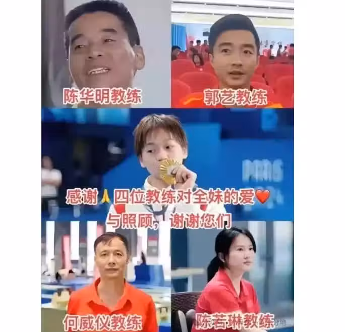 國家授予全紅嬋4位教練國家級的榮耀,4位教練都是全紅嬋的貴人
