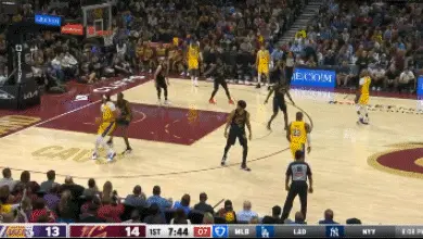 正如這個回合:詹姆斯、拉塞爾、里夫斯、八村塁一側拉開,濃眉面對莫布利面框單打。