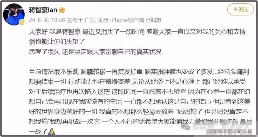 高昂的治療費用如同一座大山,壓得蔣智豪喘不過氣來。