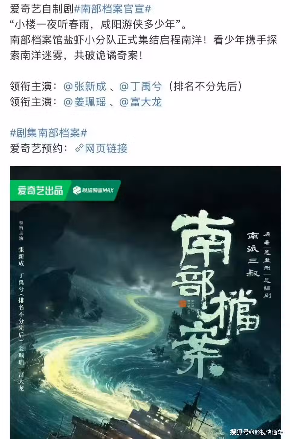 民國懸疑劇《南部檔案》官宣!雙男主陣容吸睛,又有好劇看了~