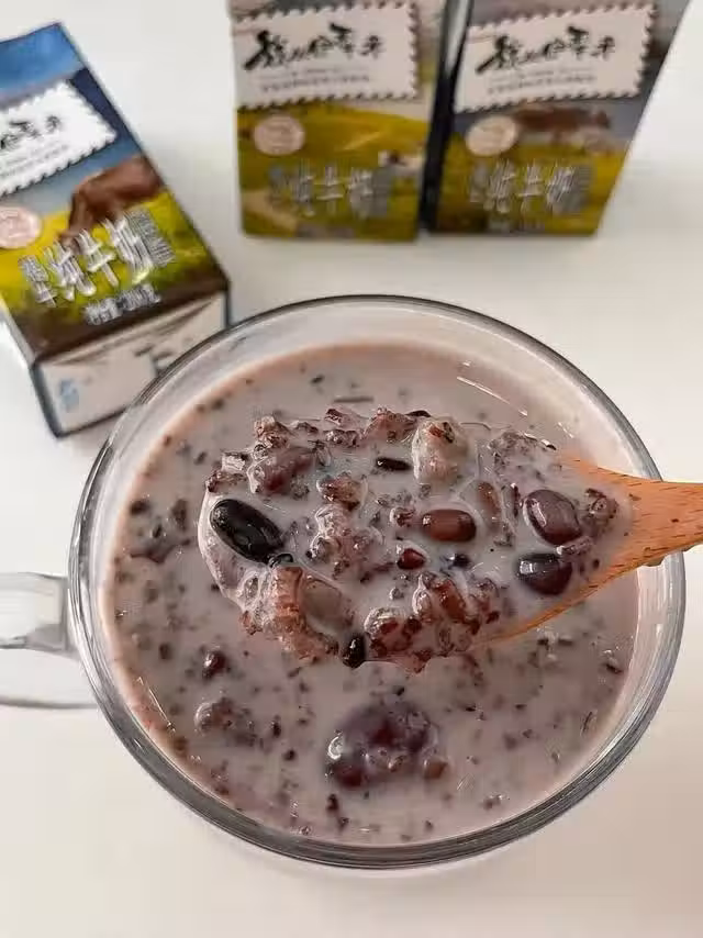 食材:褐牛奶、黑豆、黑米、黑芝麻、赤小豆、紅棗、紅糖、糯米