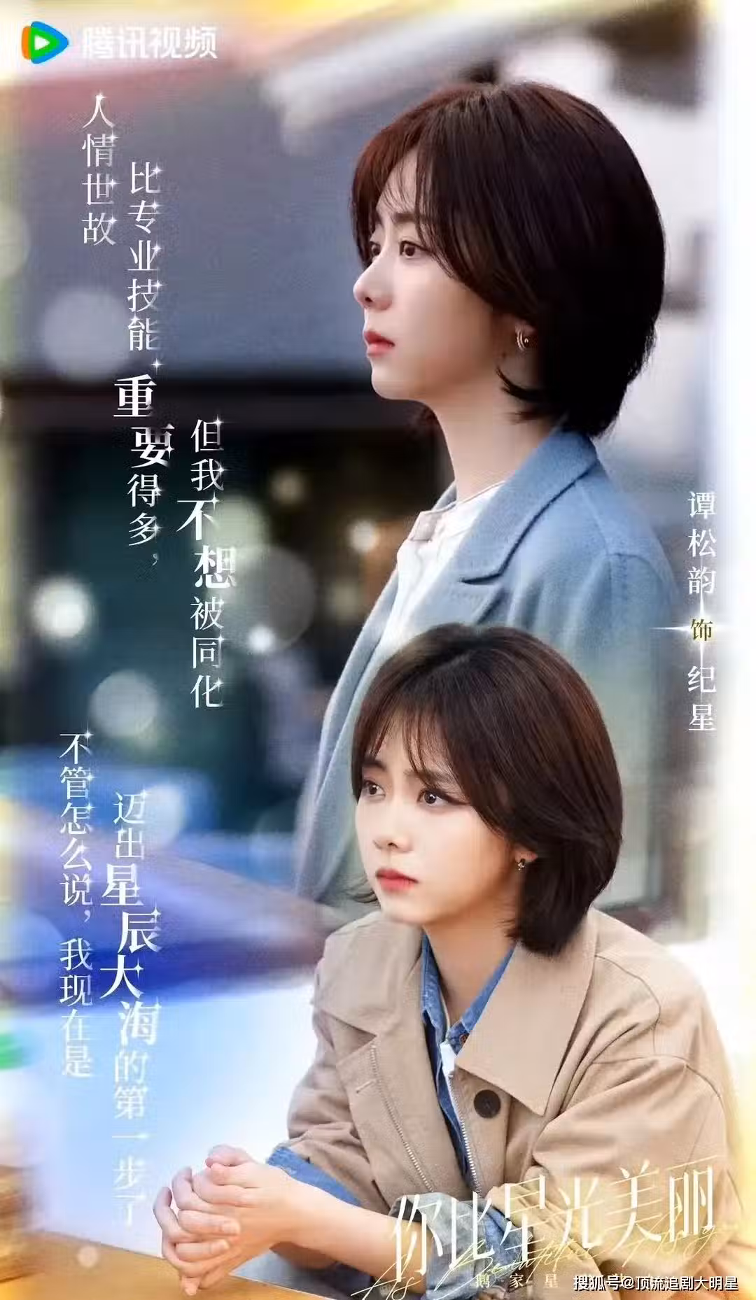 譚松韻飾演的紀星靚麗靈動,聰明上進,是韓廷的白月光,許凱飾演的韓廷,高大帥氣英俊挺拔,穿著西裝三件套出場,優雅精緻的外表下藏著一雙銳利的眼睛,韓廷是紀星的永遠的出路」 雙強男女主,為愛低頭的商業大佬和堅韌聰慧的女主多年後重逢,引導女主逐漸成長,韓廷不擅說愛!眼裡全是愛!