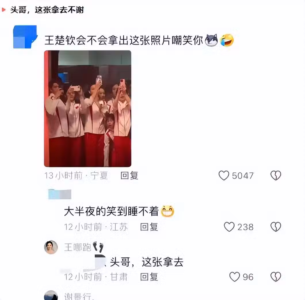 奧運健兒團港澳行結束後,王楚欽發文表達了自己的感受,稱這是收穫滿滿的幾天,還結識了新朋友,感受到了體育人的純真和快樂。然而,就在他的這條微博評論區,又發生了有趣的一幕。小孩姐崔辰曦毫不客氣地貼臉開大,再次發了王楚欽和樊振東的睡覺圖,並調侃道:「兄弟姐妹的妹呢我請問。」 這直接讓王楚欽哭笑不得,他只好回應崔辰曦:「下次見面 5 個腦瓜崩。」 這一來一往的互動,讓網友們看得樂不可支,仿佛自己也置身於他們的歡樂氛圍之中。