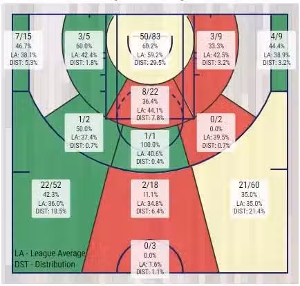此外,相比上季里夫斯依然延續著在串聯上的進步。數據上,每54.6次傳球下轉化5.0次助攻。單就助攻數而言,對比歐文(5.3次)、米切爾(5.0次)也不落下風。換言之,現階段的里夫斯越來越有兼具得分、串聯的雙能衛既視感了。