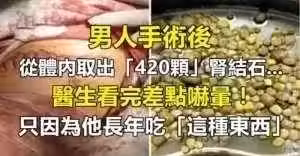 男人手術後從體內取出「420顆…」腎結石,醫生看完差點嚇暈!只因為他長年吃「這種東西」