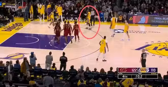 甚至這場比賽,詹姆斯還做了一個很讓人意外的動作,他不是等著比賽結束扭頭走人的,他是在比賽還沒有結束的時候,走到場邊和隊友說了兩句話,直接就走了。當時可以看到,還剩10.4秒的時候,詹姆斯直接扭頭到替補席,接下來跟他的兒子布朗尼交代了幾句,撩起衣服在還剩3秒的時候走向球員通道了。