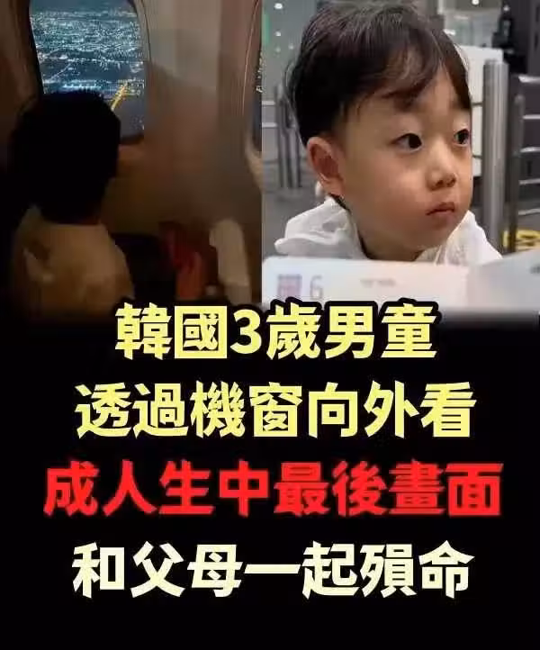 韓國3歲男童透過機窗向外看,生命定格在此刻,和父母一起殞命.