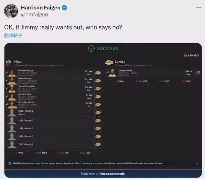 正式決定!再見了,巴特勒!湖人10換1報價曝光
