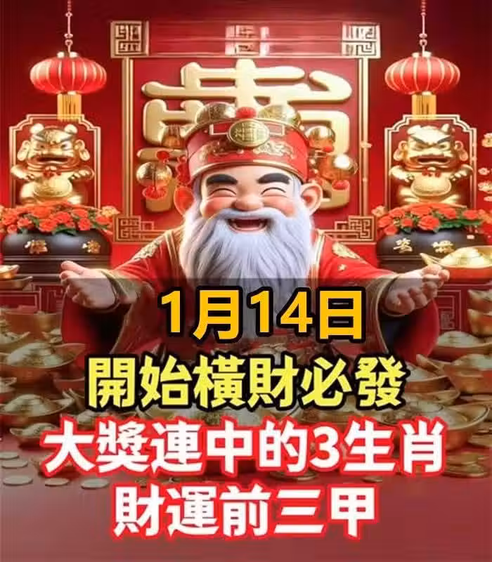 1月14日開始橫財必發,大獎連中的3生肖,財運前三甲