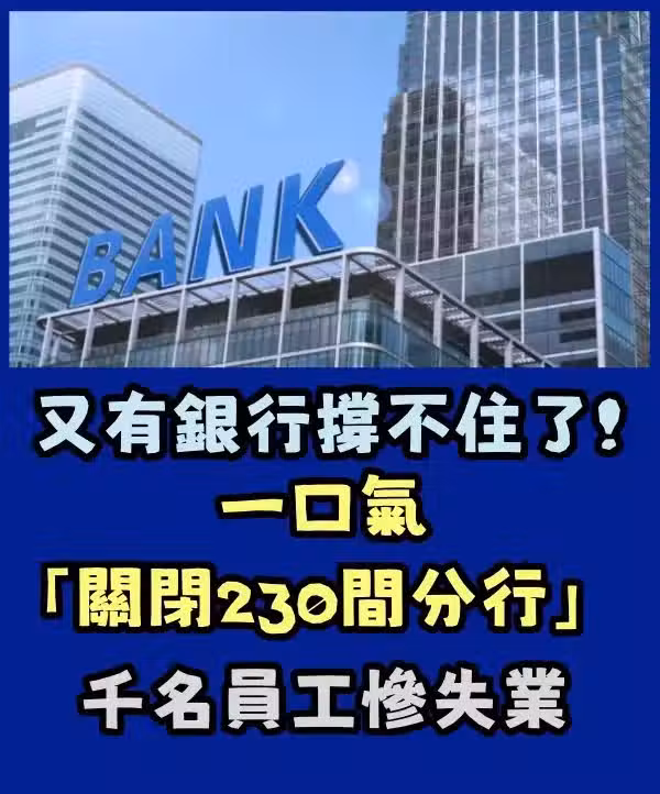 又有銀行撐不住了!一口氣「關閉230間分行」 千名員工慘失業...