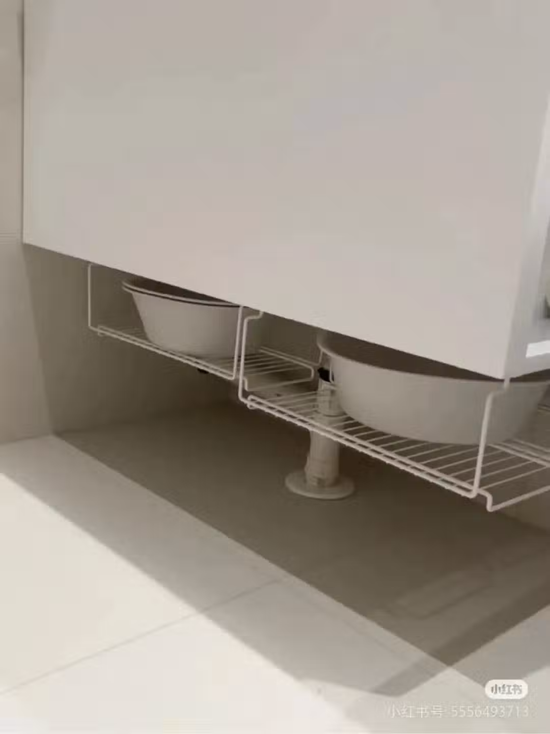 如果是掛放,有專用的粘鉤,另外盆子可以買這種摺疊的,不管是掛著還是疊放,都更省空間。