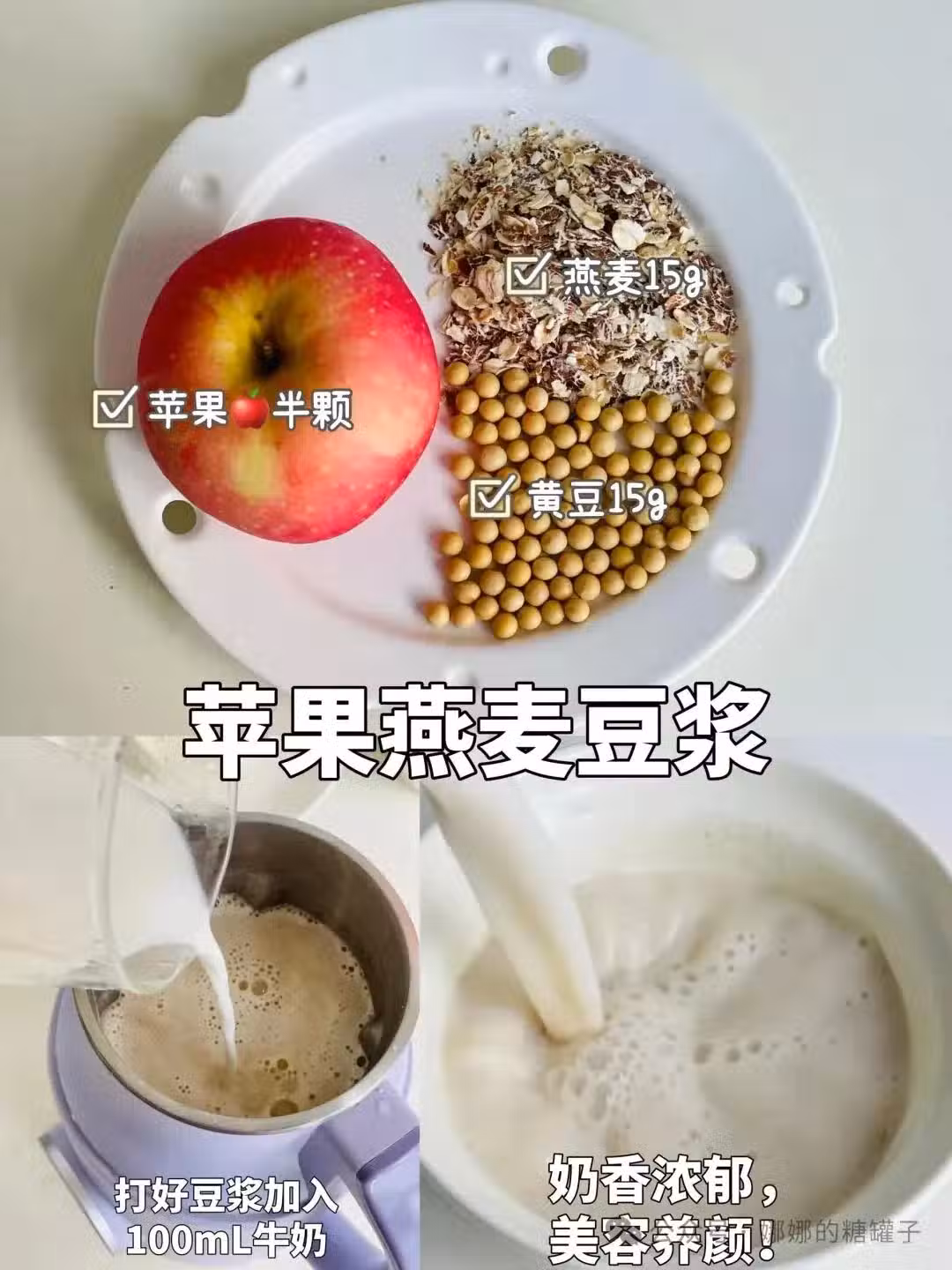 食材:蘋果半顆➕燕麥15g➕南瓜80g➕100mL牛奶。(這個真的巨巨巨好喝奶香奶香。)